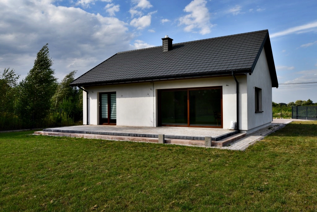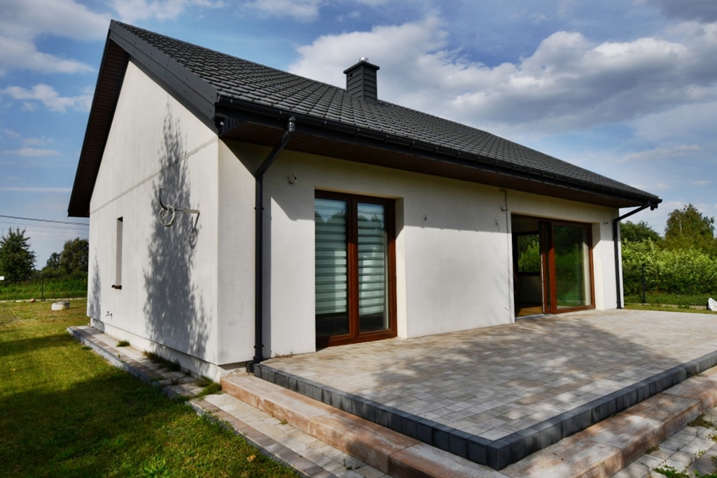 Dom parterowy o powierzchni użytkowej 86 mkw., posiada 3 pokoje: (pokój dzienny z wyjściem na taras, 2 oddzielne sypialnie), aneks kuchenny, łazienka i wc osobno.