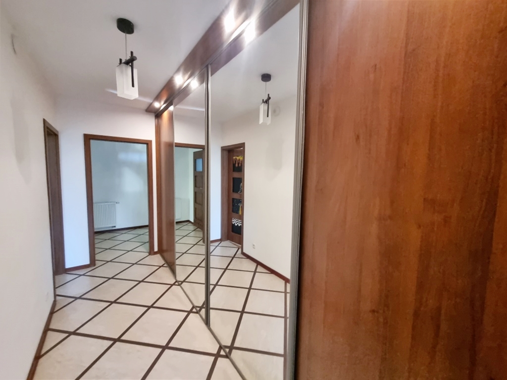 – przedpokój z dużą szafą w zabudowie z lustrami, która pełni także funkcję garderoby