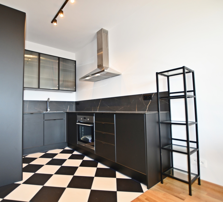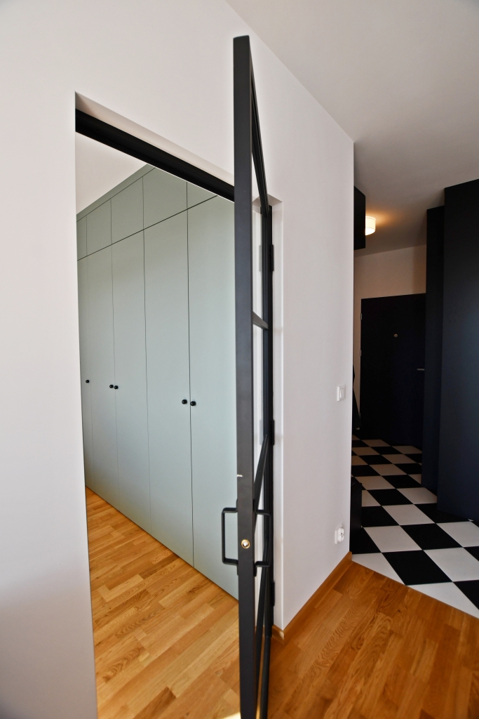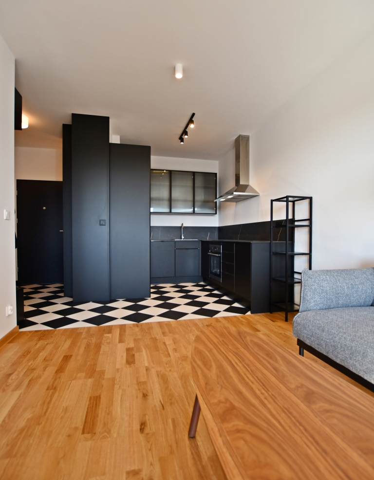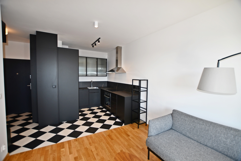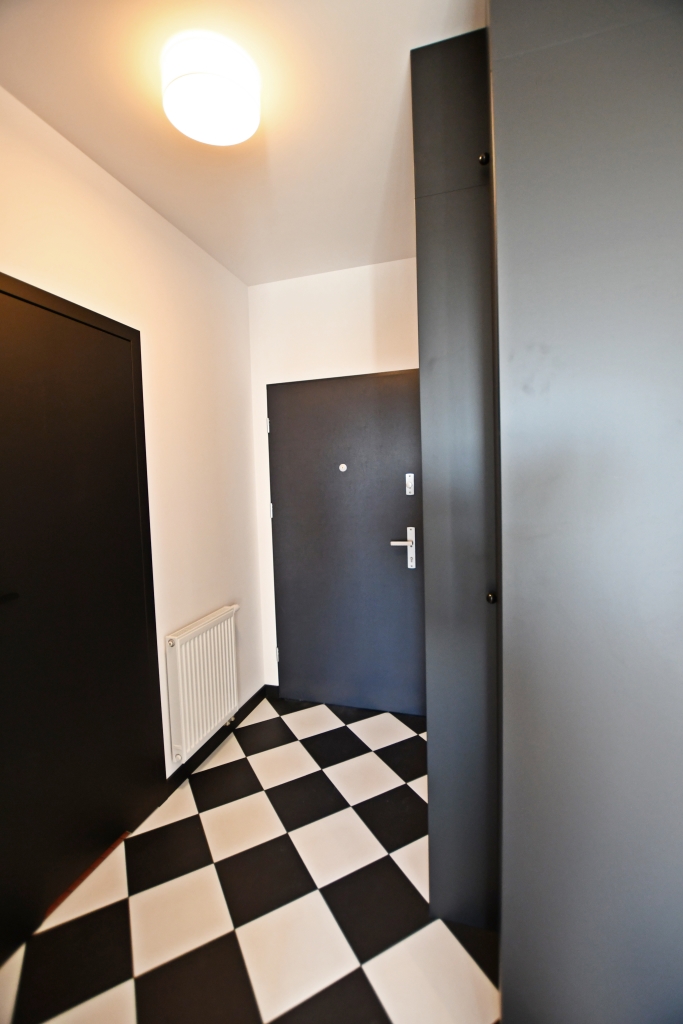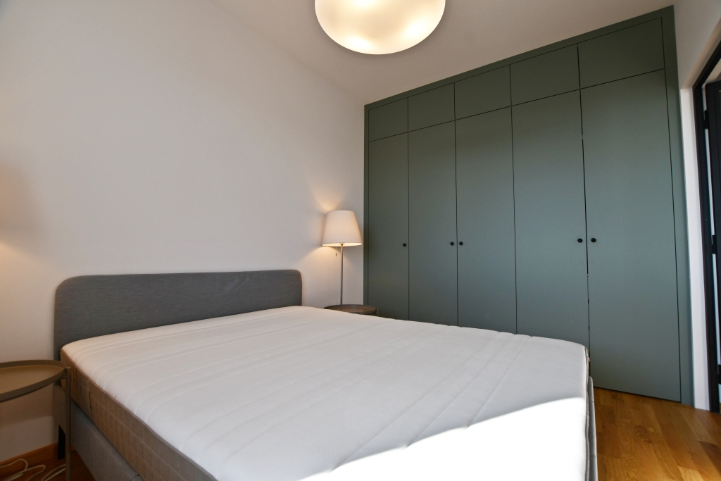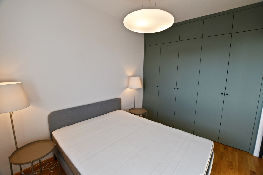Funkcjonalny układ: salon z aneksem kuchennym, sypialnia z eleganckimi przeszklonymi drzwiami. Łazienka z kabiną prysznicową. Pełne wyposażenie: pralka, lodówka, piekarnik zmywarka. Duża szafa w zabudowie w sypialni.