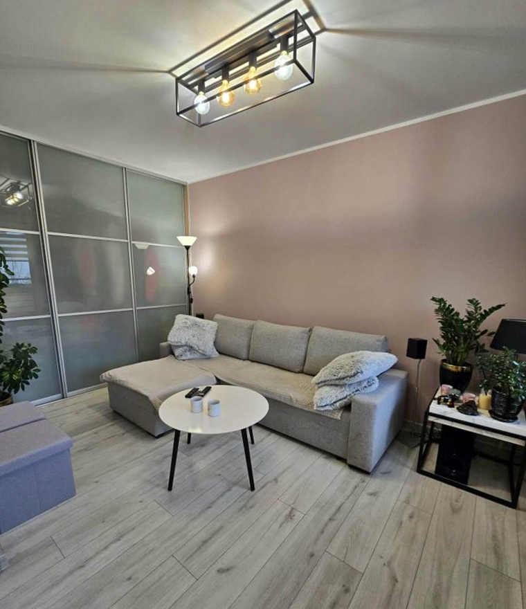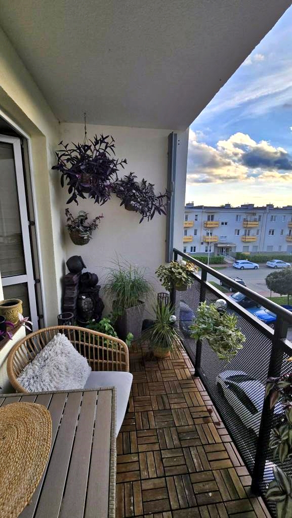 Mieszkanie składa się z pokoju dziennego z wyjściem na duży, szeroki balkon, aneksu kuchennego z oknem (nowa zabudowa kuchenna wykonana w 2025 roku)., łazienki z prysznicem i WC. Dodatkowo do mieszkania przynależy piwnica.