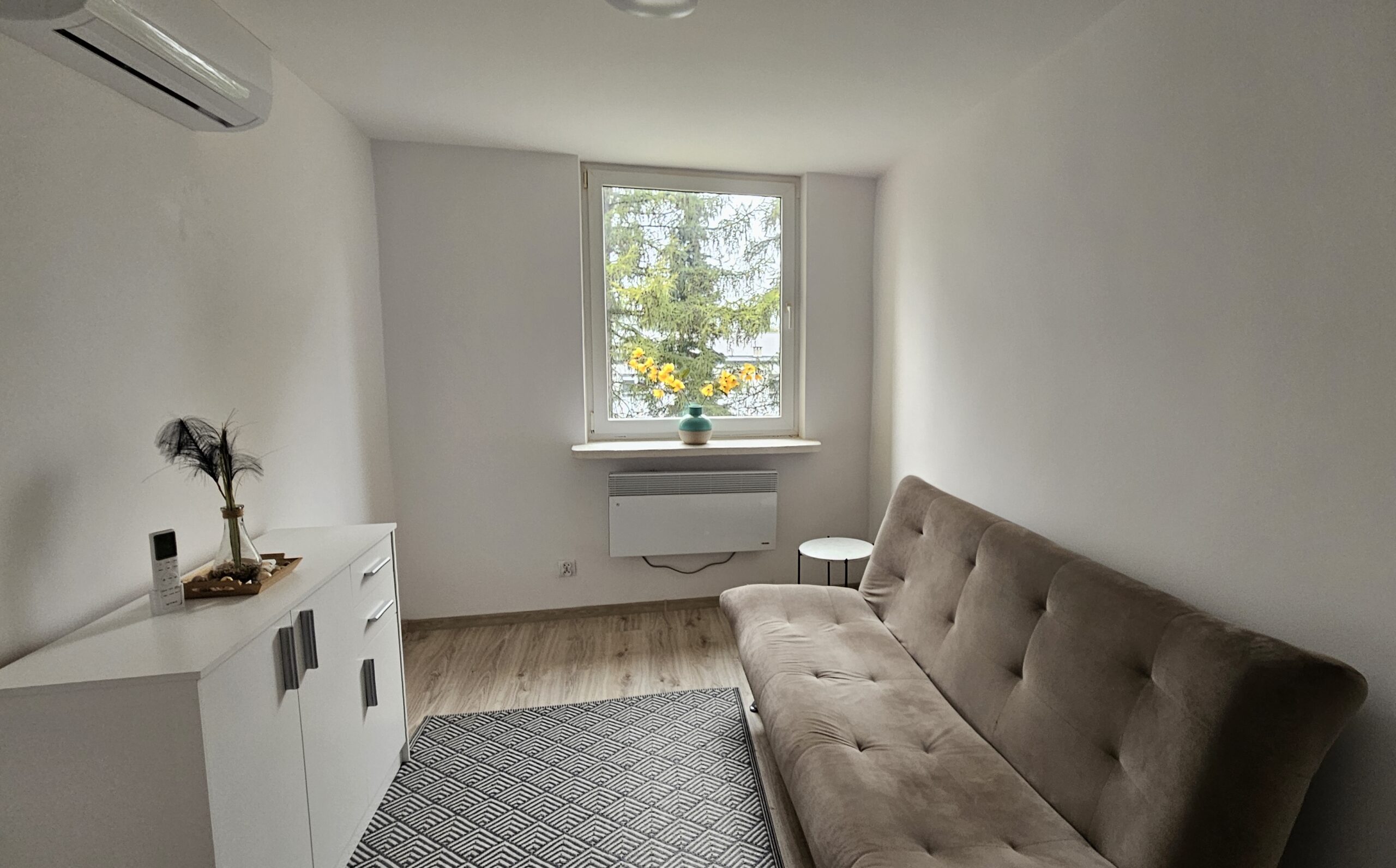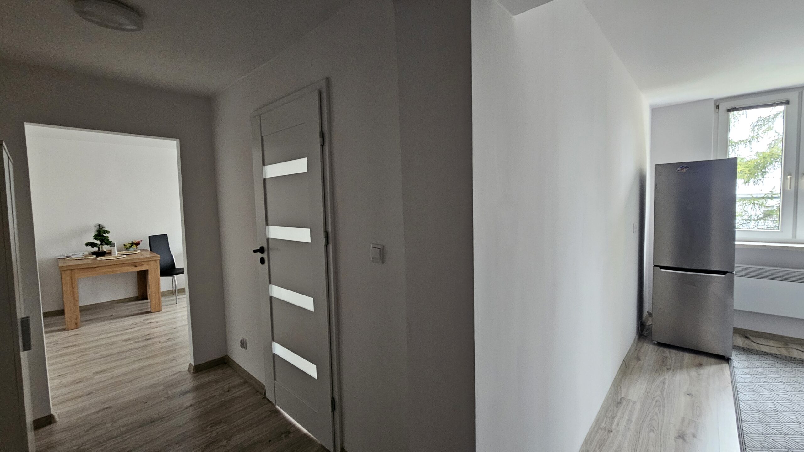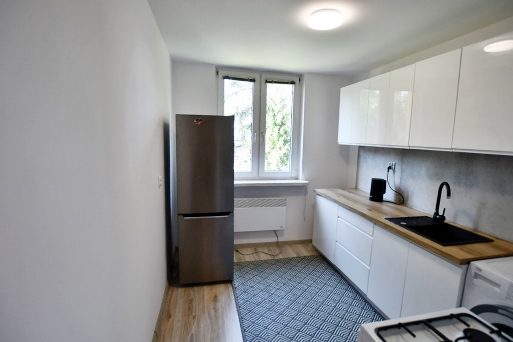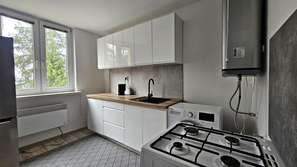 2 oddzielne pokoje (pokój dzienny z balkonem i sypialnia), widna kuchnia, łazienka.