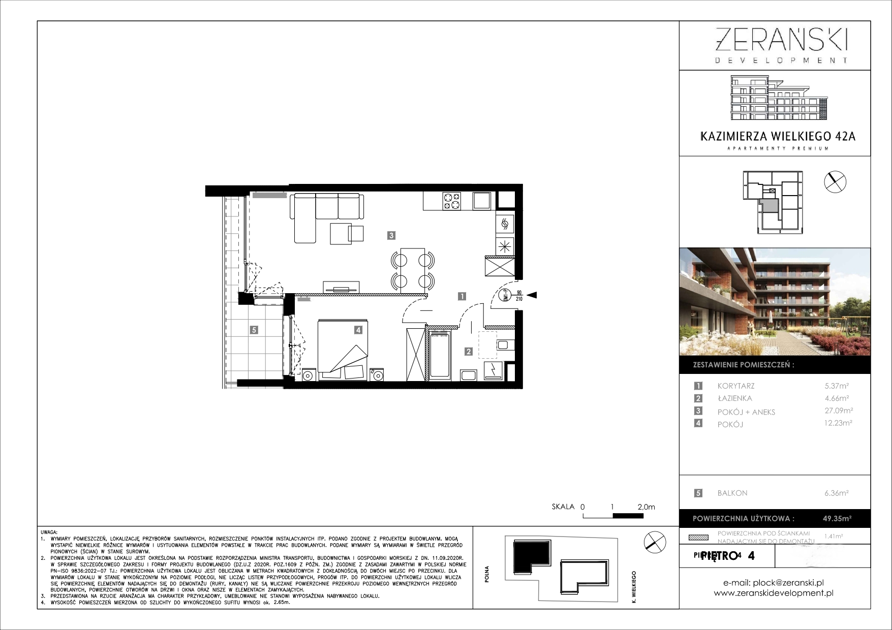 Dwupokojowe mieszkanie o powierzchni 49,35 m². Lokal znajduje się na 4 piętrze w 5-piętrowym , nowoczesnym budynku z windą. Funkcjonalny rozkład i słoneczna ekspozycja na zachód , dzięki usytuowaniu na wyższym piętrze oferuje niezakłócone widoki na zachód słońca rozlewający się nad Wisłą.