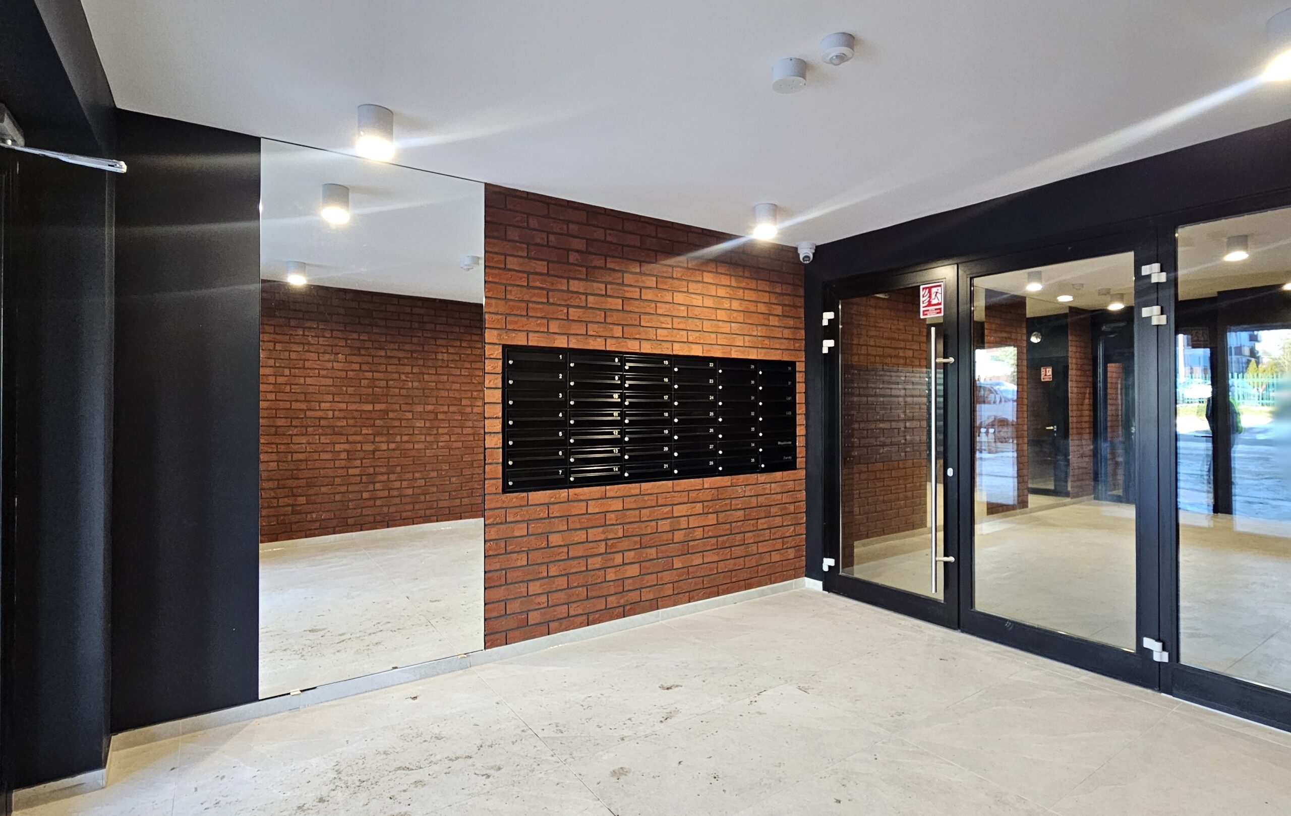 Budynek A, to 5 piętrowy budynek z windą, z podziemną halą garażową, urządzony w eleganckim, industrialnym stylu, utrzymany w loftowej kolorystyce surowej cegły i odcieni szarości. Na wejściu przestronne lobby, monitorowane, z wideodomofonem.